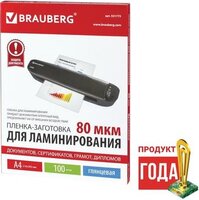 531775 Пленки-заготовки для ламинирования, комплект 100 шт., для формата а4, 80 мкм, brauberg