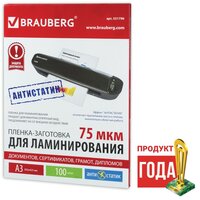 Пленка для ламинирования BRAUBERG антистатик, 100шт, для формата А3 75 мкм, 531796