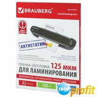 Пленки-заготовки для ламинирования антистатик BRAUBERG, комплект 100 шт., для формата A3, 125 мкм