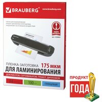 Пленки-заготовки для ламинирования BRAUBERG, комплект 100 шт., для формата А4, 250 мкм