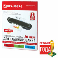 Пленки-заготовки для ламинирования BRAUBERG, комплект 100 шт., для формата 65х95 мм, 75 мкм
