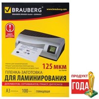 Пленки-заготовки для ламинирования BRAUBERG, комплект 100 шт., для формата А3, 125 мкм