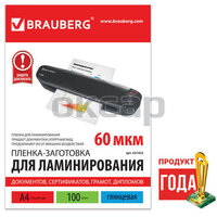 Пленки-заготовки для ламинирования BRAUBERG, комплект 100 шт., для формата А4, 100 мкм, 530801
