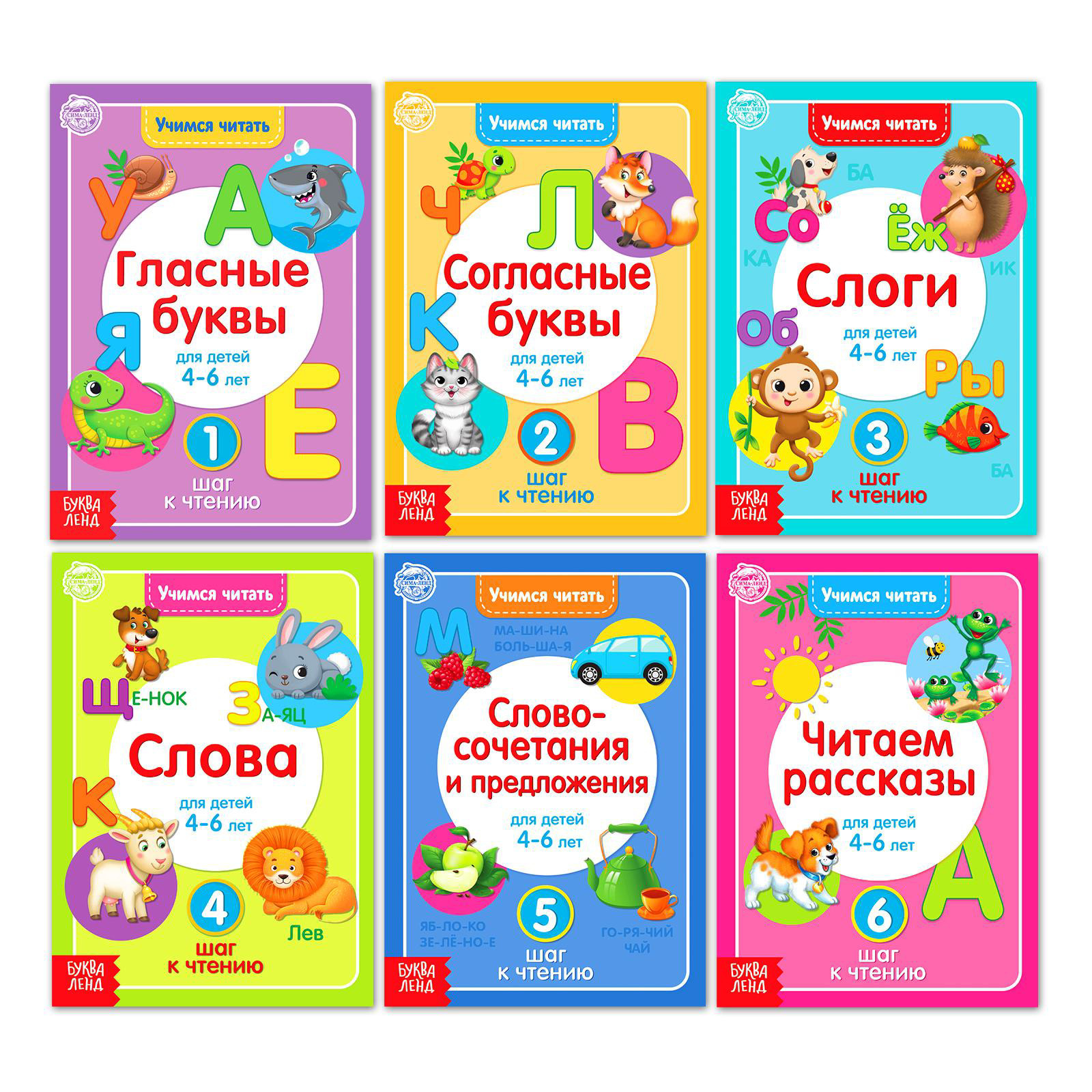 Книги детские, БУКВА-ЛЕНД, "Учимся читать", обучающий набор, 6 книжек по 24 страницы