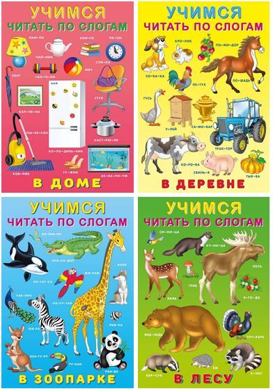 Комплект №109 Учимся читать по слогам: В зоопарке. В доме. Влесу. В деревне