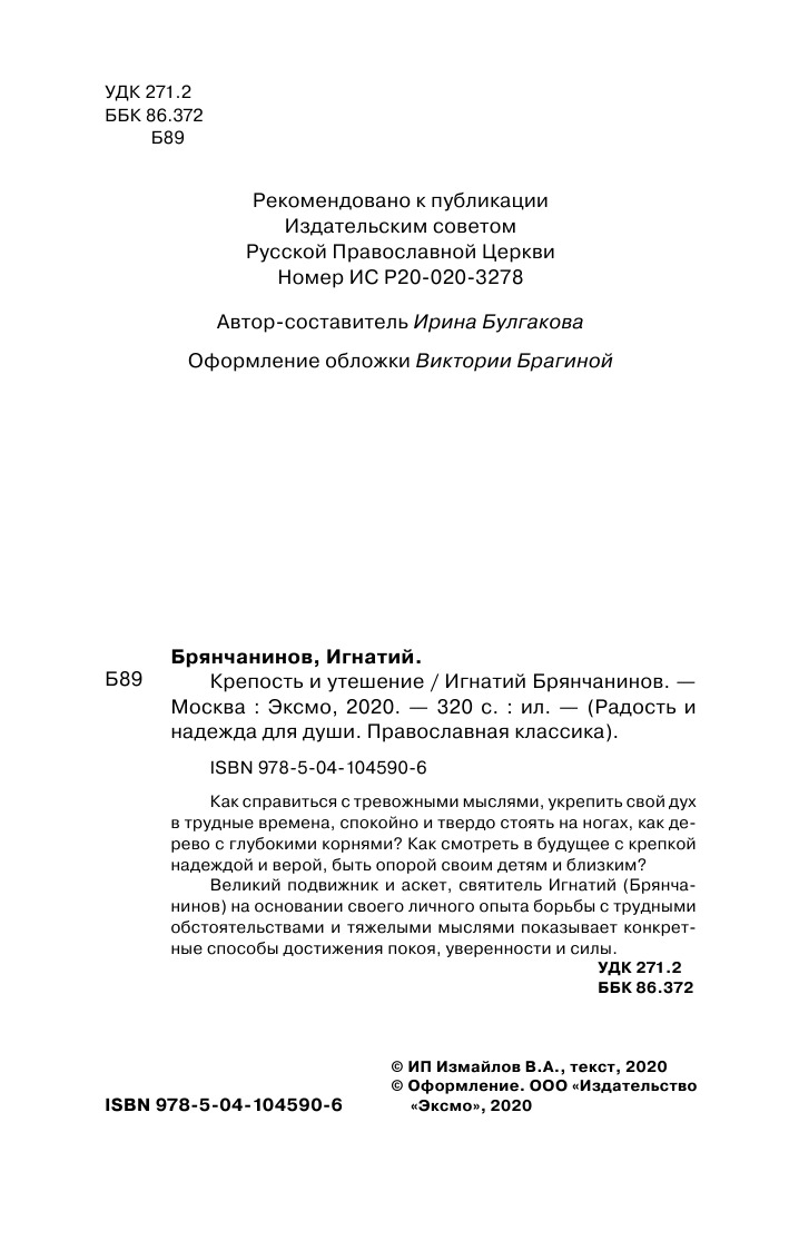 Крепость и утешение | Брянчанинов Игнатий
