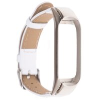Кожаный ремешок GSMIN Leather Collection для Xiaomi Mi Band 3/4 (Белый)