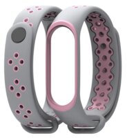 Ремешок силиконовый для браслета Xiaomi Mi Band 3 перфорация серо/розовый