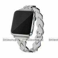 Серебристый стальной ремешок для Apple Watch 44мм / 42мм ромбы