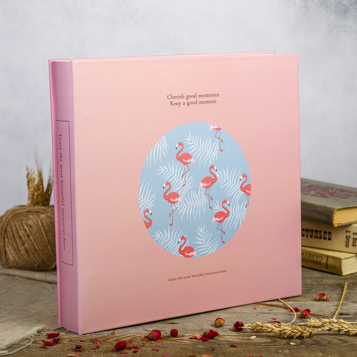 Фотоальбом на 800 фото 9х13 см Фламинго и листья в коробке