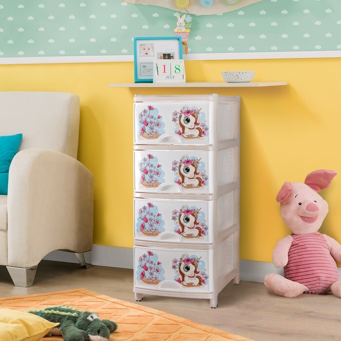 Комод детский 4-х секционный Сказочное королевство на колёсиках