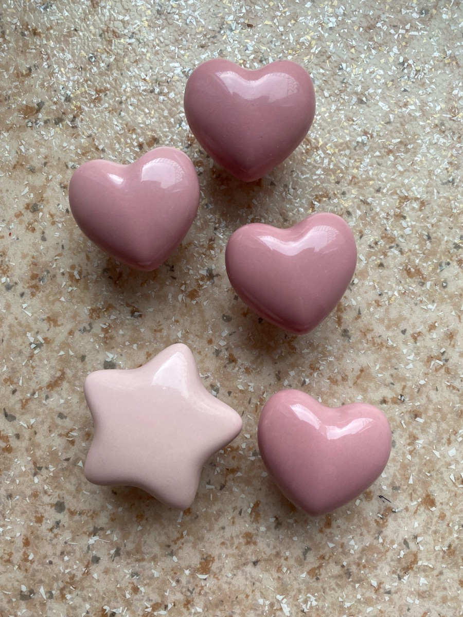 Ручка-кнопка мебельная металлическая, вставка розовый мрамор
