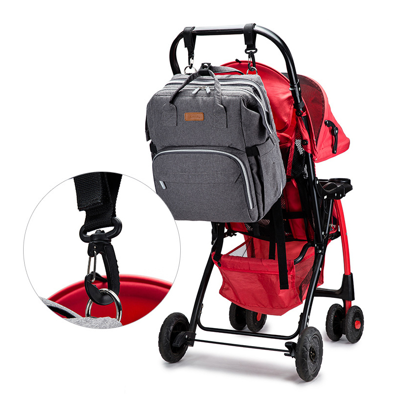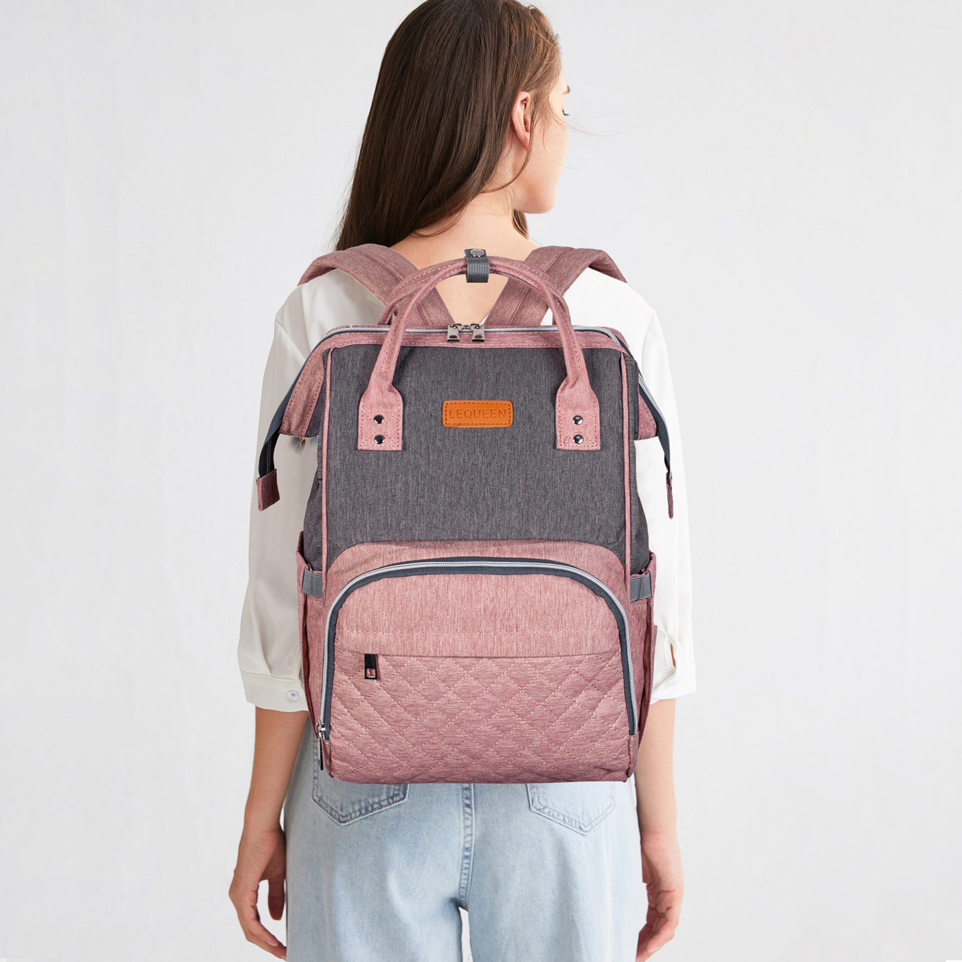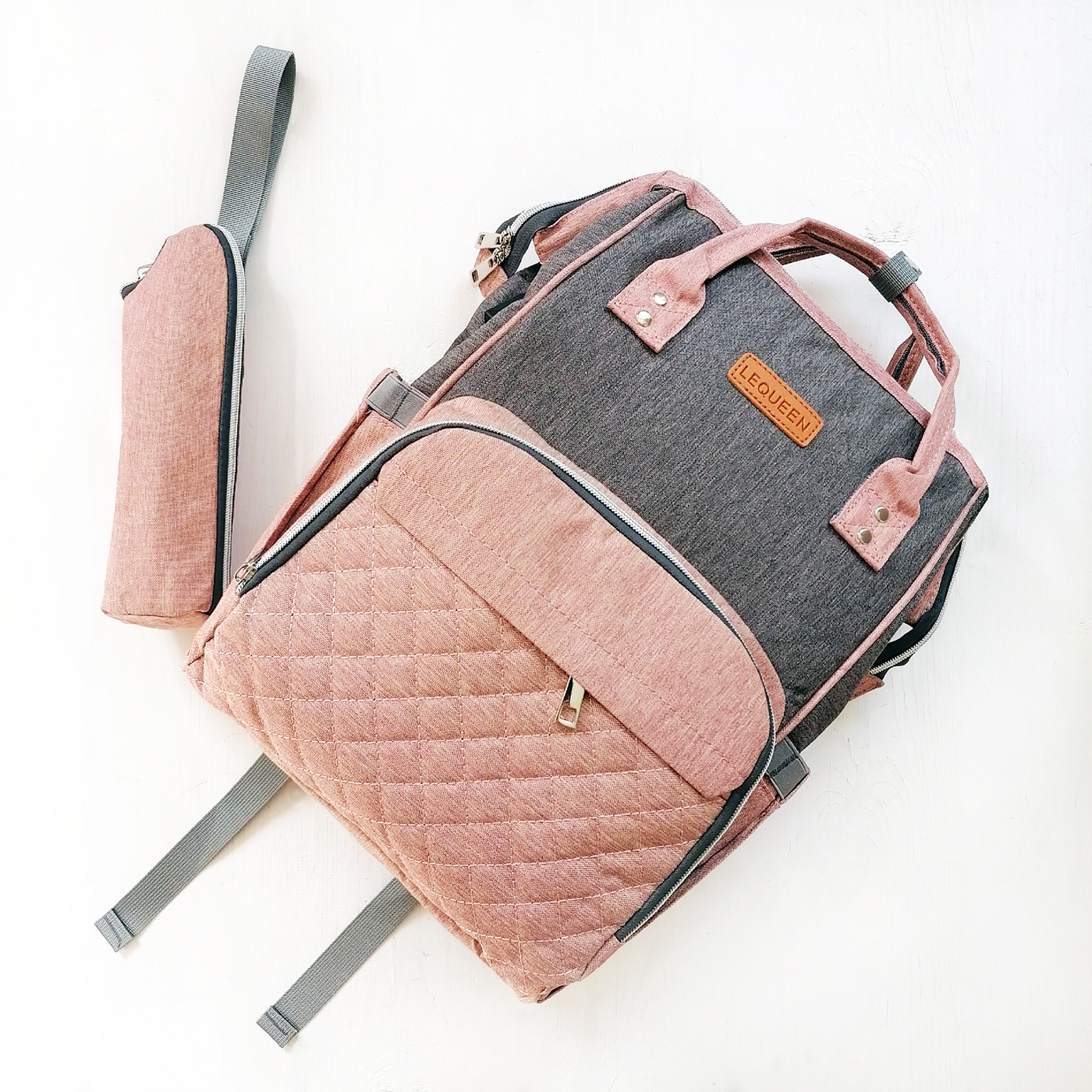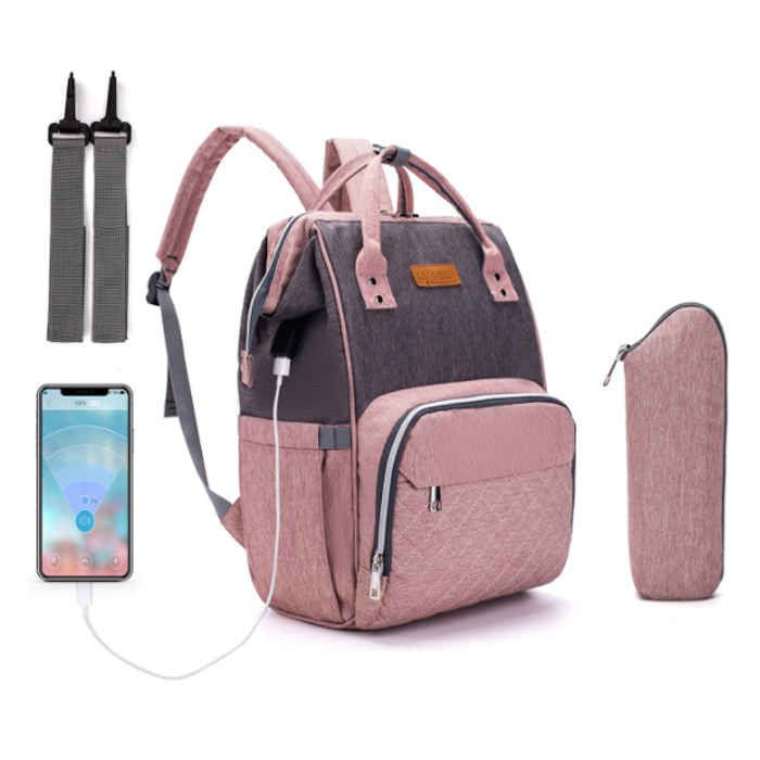 Рюкзак для мамы серо-розовый Lequeen с USB портом и креплениями на коляску