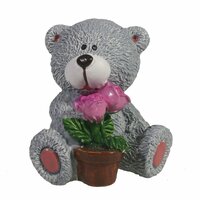 Фигура декоративная Мишка с горшком цветов (серый) 5*5*5.5 см
