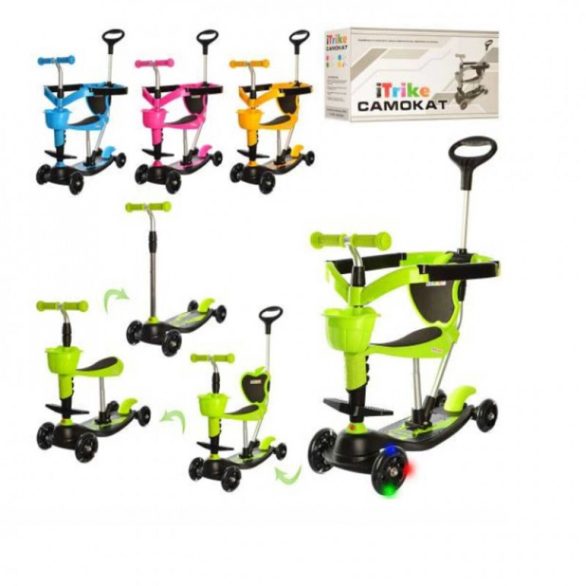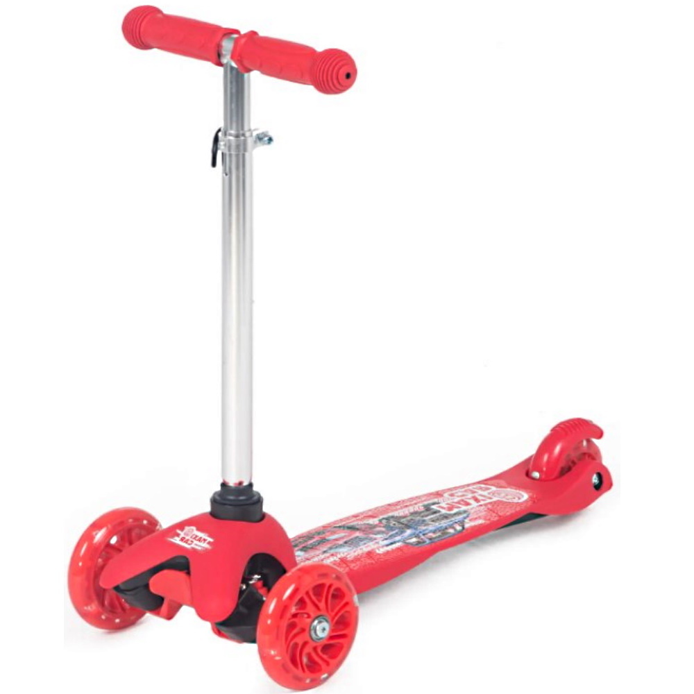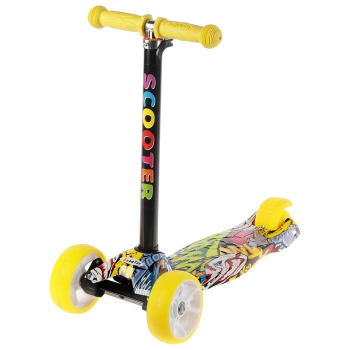 Самокат 3-х колесный детский, складной, светящиеся колеса, Машинки