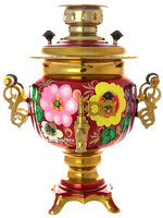 Электрический самовар 3 литра с художественной росписью "Жостово на красном фоне", арт. 106639