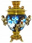 Самовар электрический 3 л с художественной росписью "под жостово на синем" (желудь)