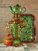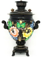 Самовар на дровах (угольный) "Желудь" с росписью "Жостово" 3 литра + труба