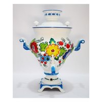 Электрический самовар "Овал ажурный", 3 литра в наборе №1 с росписью "Гжель классика"