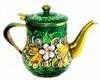 Заварочный чайник 0,6 л металлический с художественной росписью "Кудрина" на зеленом фоне