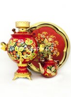 Электрический самовар "Шар", 3 литра в наборе №1 с росписью "Хохлома на красном"