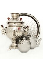Электрический самовар на 3 литра из латуни никелированный формы "Овал" в наборе №1