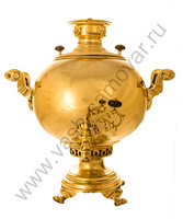 Угольный антикварный самовар «Шар» гладкий медальный 7л латунь, на дровах
