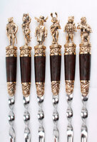 Шампура подарочные 6шт. Разные звери с рукоятью из ореха и латуни