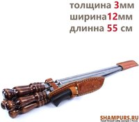 Колчан кожаный c ножом - 6 профессиональных шампуров с деревянной ручкой для мяса 12мм-55 см