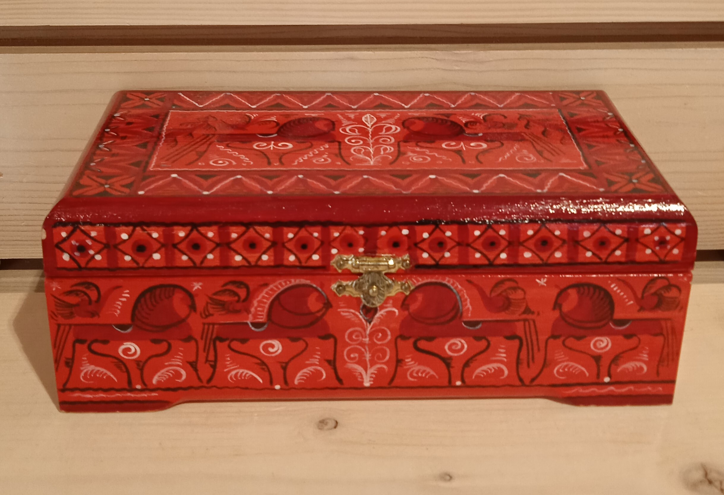 Короб круглый красный (267), Северная роспись, ручная авторская работа