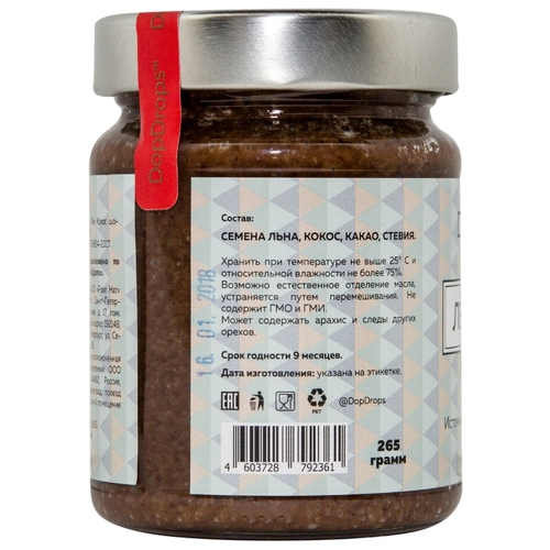DopDrops Паста ореховая Лен Кокос (шоколад, стевия) стекло