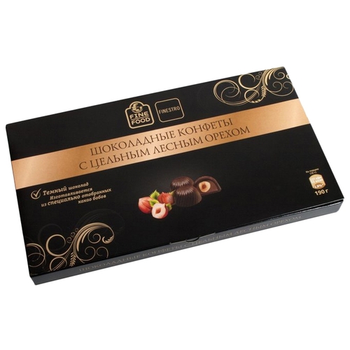 Набор конфет Fine Food Шоколадные конфеты с цельным лесным орехом, темный шоколад, 190г