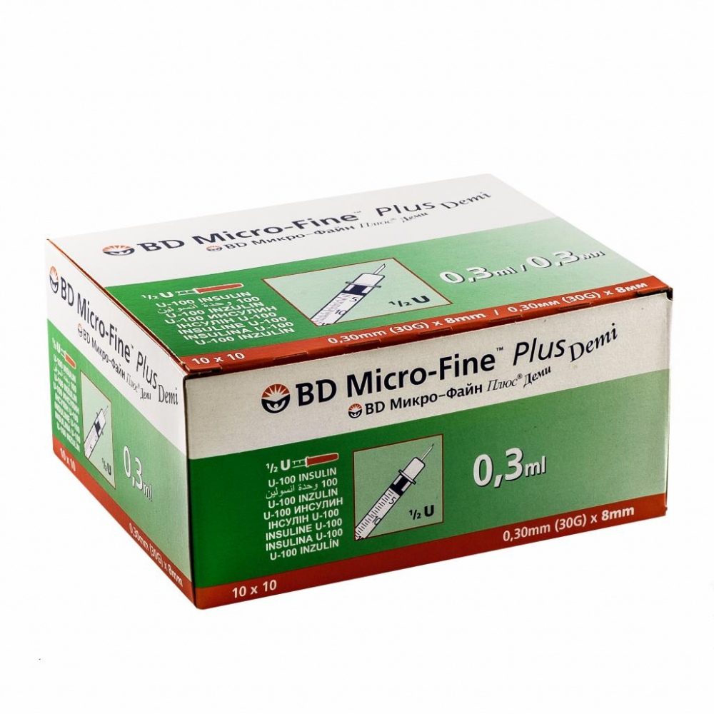 Шприц инсулин "Micro-Fine plus" Demi-BD раз/игл интегр стер 100ЕД 0.3мл 0.3x8мм G30 №10 уп