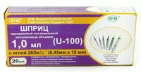 Шприц SFM трёхкомпонентный инсулиновый 1мл u-100 с иглой 20шт