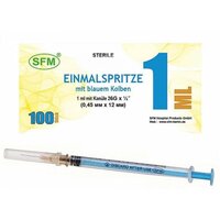 Шприц (3-х комп.) 1мл туберк.шкала c поршнем синего цвета, съёмная игла 26G (0,45х12)