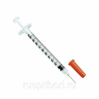 Шприц инсулиновый 1мл U100 KDM, интегрированная игла 29G (0,33x12,7), трехкомпонентный
