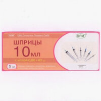 СФМ шприц трехкомпонентный 10мл с иглой 0,8х40мм 21G №5
