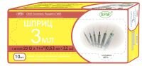 SFM Шприцы трехкомпонентные одноразовые 3 мл с иглой 23 G (0,63 х 32 мм) без латекса, 10 штук