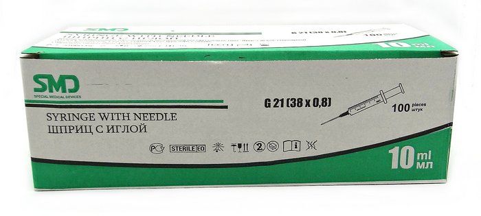 Шприц трехкомпонентный раз/игл стер 10мл 0.8x38мм G21 - 1шт