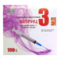 Шприц SFM 3-х комп 3мл (0,63х32/23G) N100