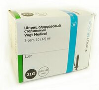 Шприц Vogt Medical трёхкомпонентный 10 (12)мл с иглой 21g 100шт