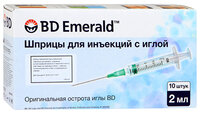 Шприц BD Emerald 3-х компонентный 2мл c иглой 0,7-30мм №10 черный