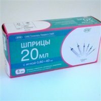 Шприц одноразовый 3-х компонентный (20мл №5 инд. уп. (21G 0,8х40))