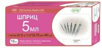 SFM Шприцы трехкомпонентные одноразовые 5 мл с иглой 22 G (0,70 x 40 мм) без латекса, 10 штук