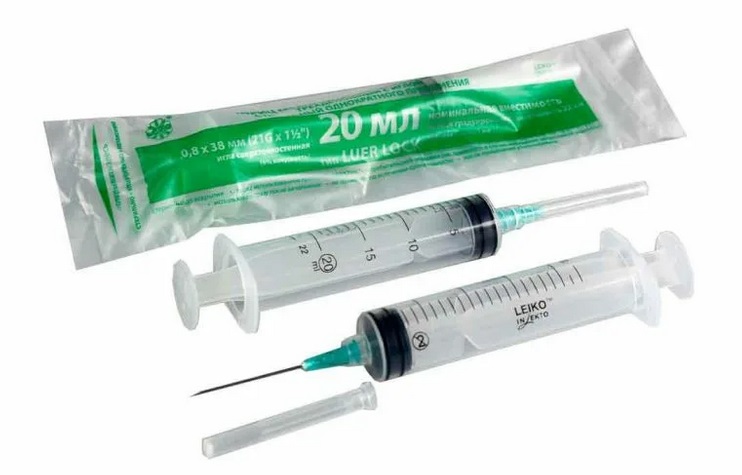 Шприц трехкомпонентный "Leiko" раз/игл стер 20 мл 0.8x38 мм G21