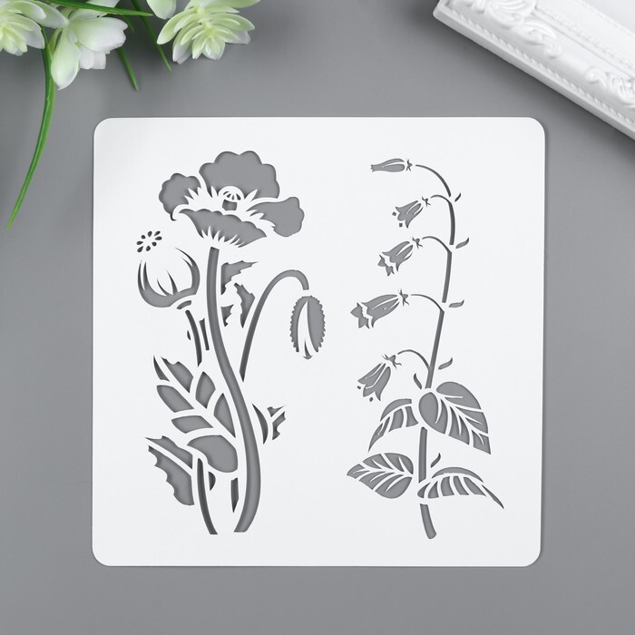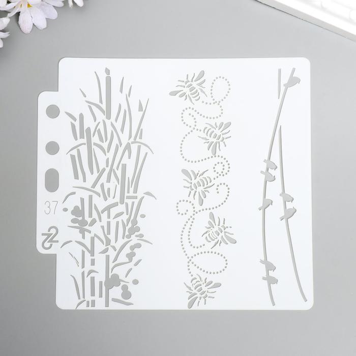 Трафарет пластик "Бамбук, пчёлки и птицы на проводах" 13х14 см