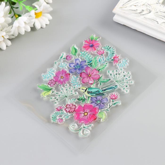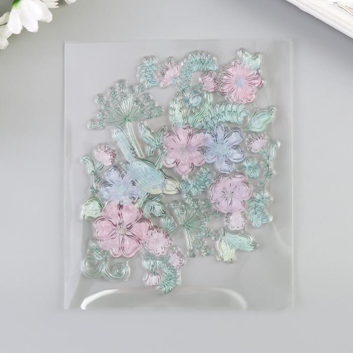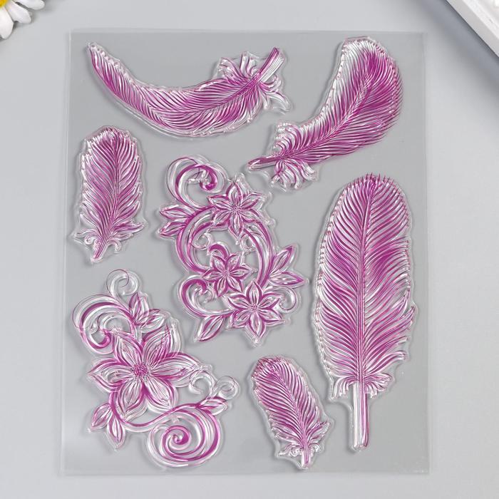 Штамп для творчества силикон "Цветы и пёрышки" 18х14 см