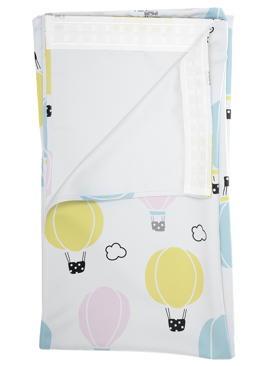 Штора готовая Путешествие 1 полотно 265х180см, на бежевом фоне цветной рисунок