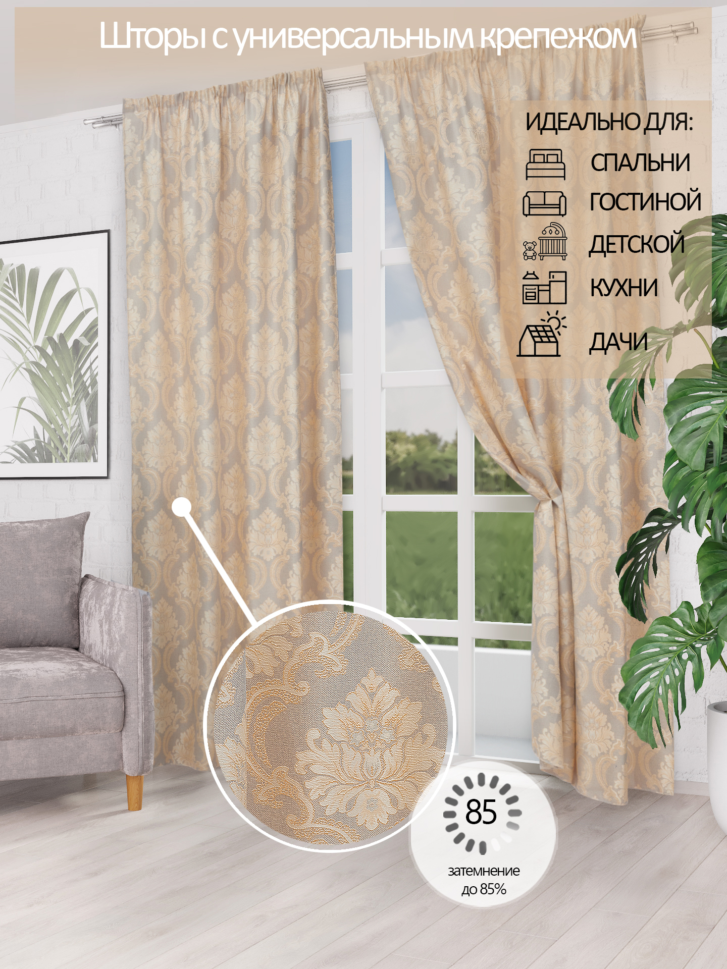Комплект штор Mramor Kanvas 270х400см, светло-бежевый