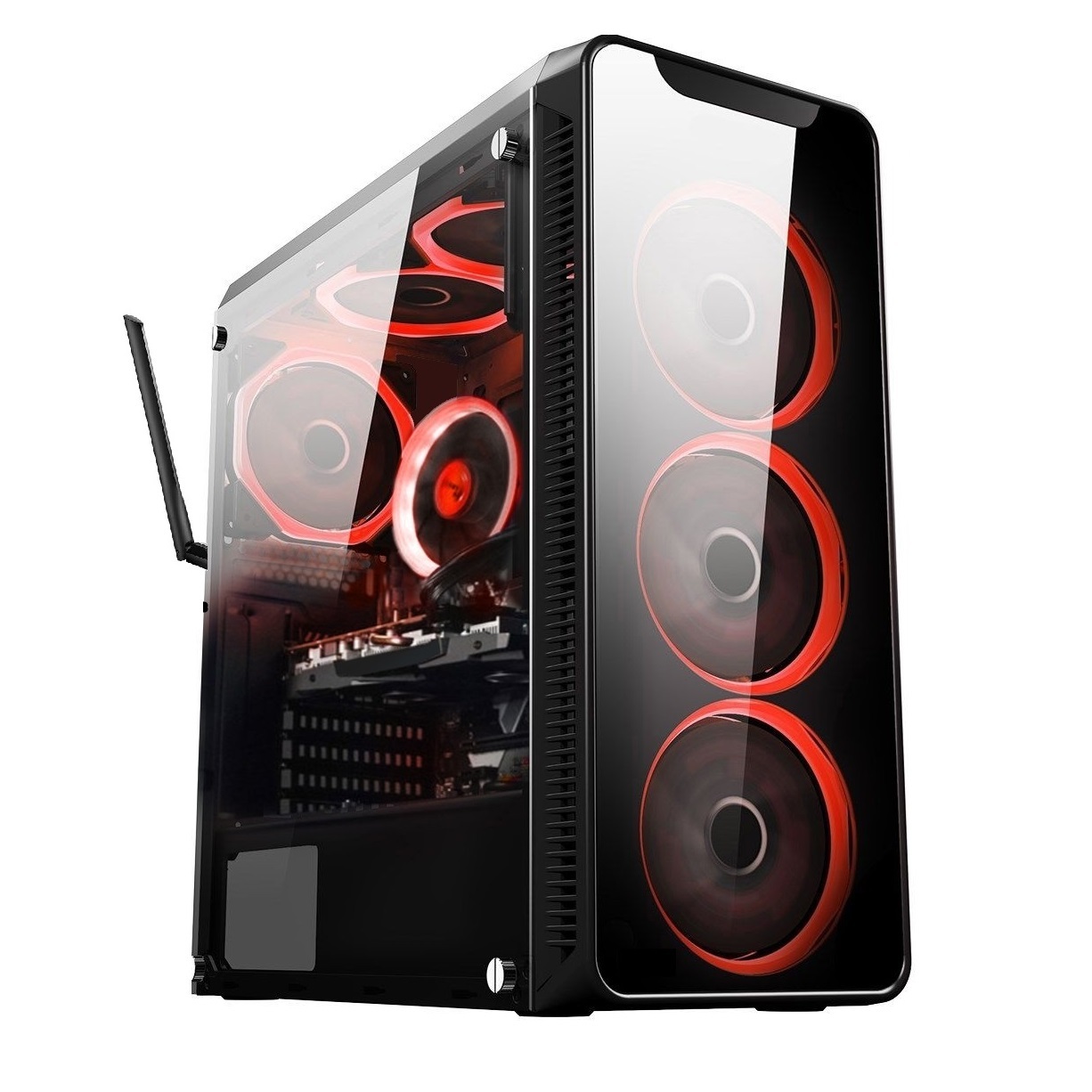 Системный блок Игровой Компьютер (Intel Core i7-920 / 16Gb / SSD 120Gb / HDD 500Gb / GTX 1650 4Gb / JP-X Red / Клавиатура / Мышь / Wi-Fi), черный, красный